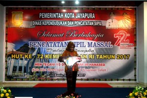 Dalam sambutan Walikota Jayapura yang dibacakan oleh Sekda Kota Jayapura, Rasmus D. Siahaya mengemukakan terkait dengan pelaporan perkawinan sesungguhnya member i manfaat dalam berbagai pengurusan seperti akte kelahiran anak.