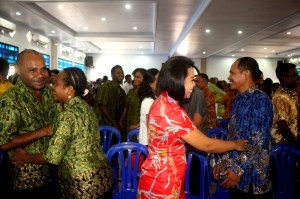 Jayapura (KPN)- Sebanyak 106 pasangan yang beragama Kristen dari berbagai denominasi gereja mengikuti program nikah massal yang digelar Dinas Kependudukan dan Catatan Sipil (Dispendukcapil) Kota Jayapura, Provinsi Papua, Kamis (24/08/2017).