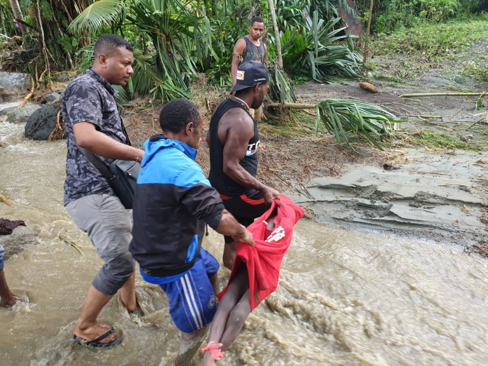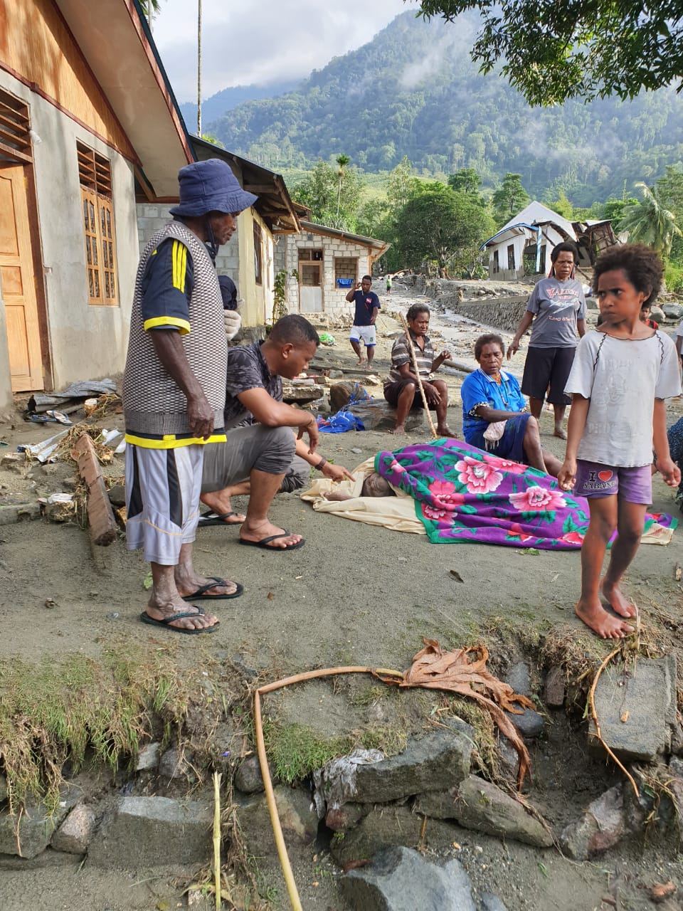 Beberapa kantong jenasa disiapkan oleh pihak kepolisaian . ( Foto : Istimewa )Salah satu Korban banjir bandang. ( Foto : Istimewa)Distrik Ravenirara juga terkena banjir badang, warga juga membutuhkan bantuan , ( Foto : Eka Sulistiyoriny )