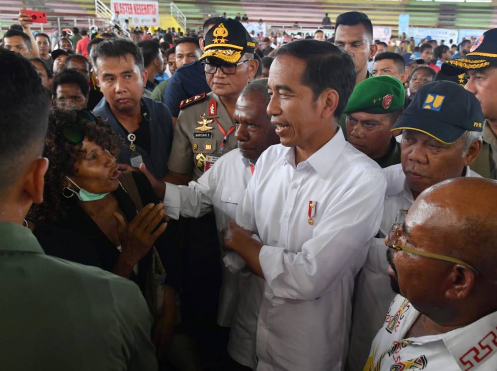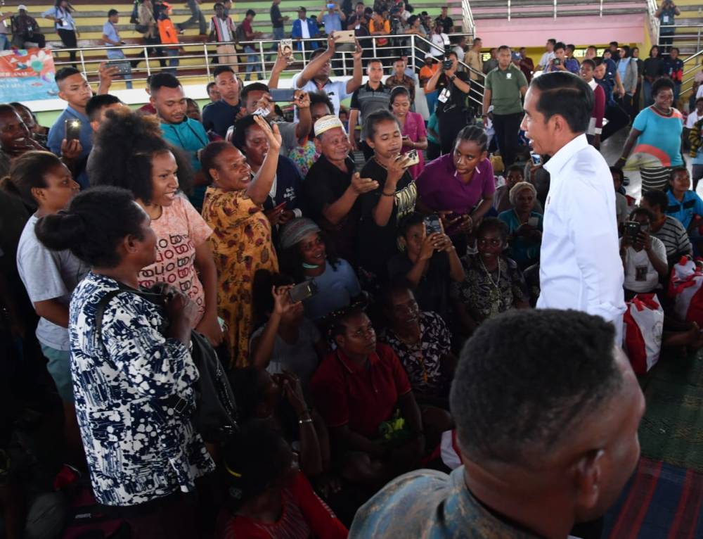 Presiden Joko Widodo bersama Ibu Iriana saat disambut oleh Gubernur Papua,Pangdam 17 Cenderawasih, Kapolda , di bandara Sentani, Senin 01/4/2019. ( Foto : Staf Kepresidenan )Presiden Joko Widodo,saat mendengar aspirasi dari korban bencana banjir bandang Sentani ,yang sementara masih mengungsi di GOR Touware kampung Kwardeware, distrik Waibun Kabupaten Jayapura, Senin 01/4/2019. ( Foto : Staf Kepresidenan)Ibu Iriana Joko Widodo yang didampingi oleh istri gubernur Papua , saat mendengar apa yang disampaikan oleh salah satu mama korban bencana yang juga mengungsi di GOR Touware. ( Foto: Staf kepresidenan)Presiden Joko Widodo, mendengar aspirasi salah satu mama Papua ditempat pengungsian. ( Foto : Staf kepresidenan)Presiden Joko Widodo , duduk bersama- sama mama- mama sambil mendengar apa yang mereka sampaikan . ( Foto : Staf kepresidenan)Terpancar suka cita di wajah anak- anak SD Inpres Kemiri di Distrik Sentani, Kabupaten Jayapura, saat bersama Presiden Joko Widodo. ( Foto: Staf kepresidenan)