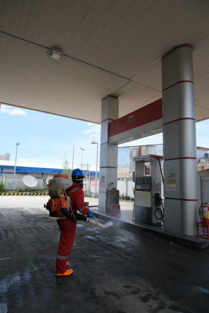 Unit Manager Communication, Relations & CSR MOR VIII PT Pertamina (Persero), Edi Mangun mengatakan upaya sterilisasi SPBU telah dilakukan lebih dari 70% SPBU yang ada di wilayah MOR VIII dengan dilaksanakannya penyemprotan disinfektan dan penyediaan fasilitas cuci tangan guna sebagai perlindungan konsumen secara bertahap ke SPBU lainnya.