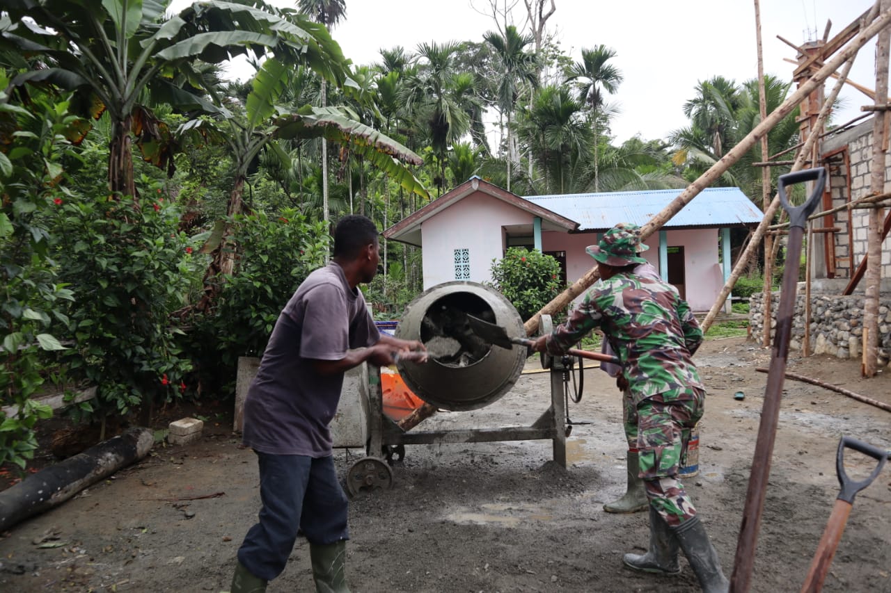 Pekerjaan pembangunan 3 unit rumah dan 1 unit gereja yang dikerjakan oleh Satgas TMMD Kodim 1701/Jayapura saat ini sudah mencapai 50%. Diharapkan pembangunan dapat diselesaikan sebelum program TMMD ini ditutup pada 16 April mendatang.(Koko)