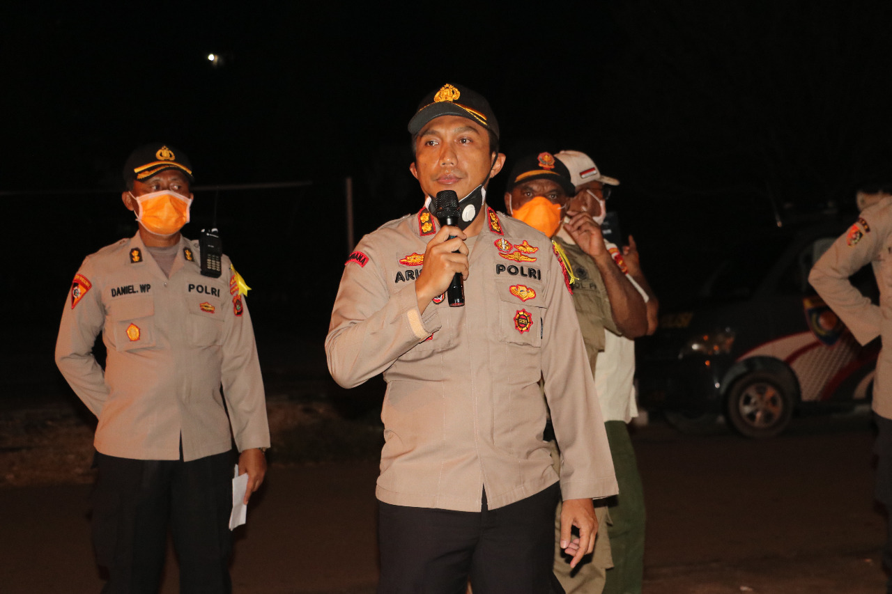 Pukul 18.45 Wit, pengarahan oleh Kabag Kerma Ops Polda Papua AKBP Daniel W. Priyonggo yang menyampaikan, Bahwa kegiatan ini merupakan lanjutan dari kegiatan sebelumnya untuk kita bersama-sama melakukan pencegahan, pengendalian dan penanggulangan penyebaran Corona Virus Disease 2019 (Covid-19) di Papua khususnya Kota Jayapura agar tidak meluas.