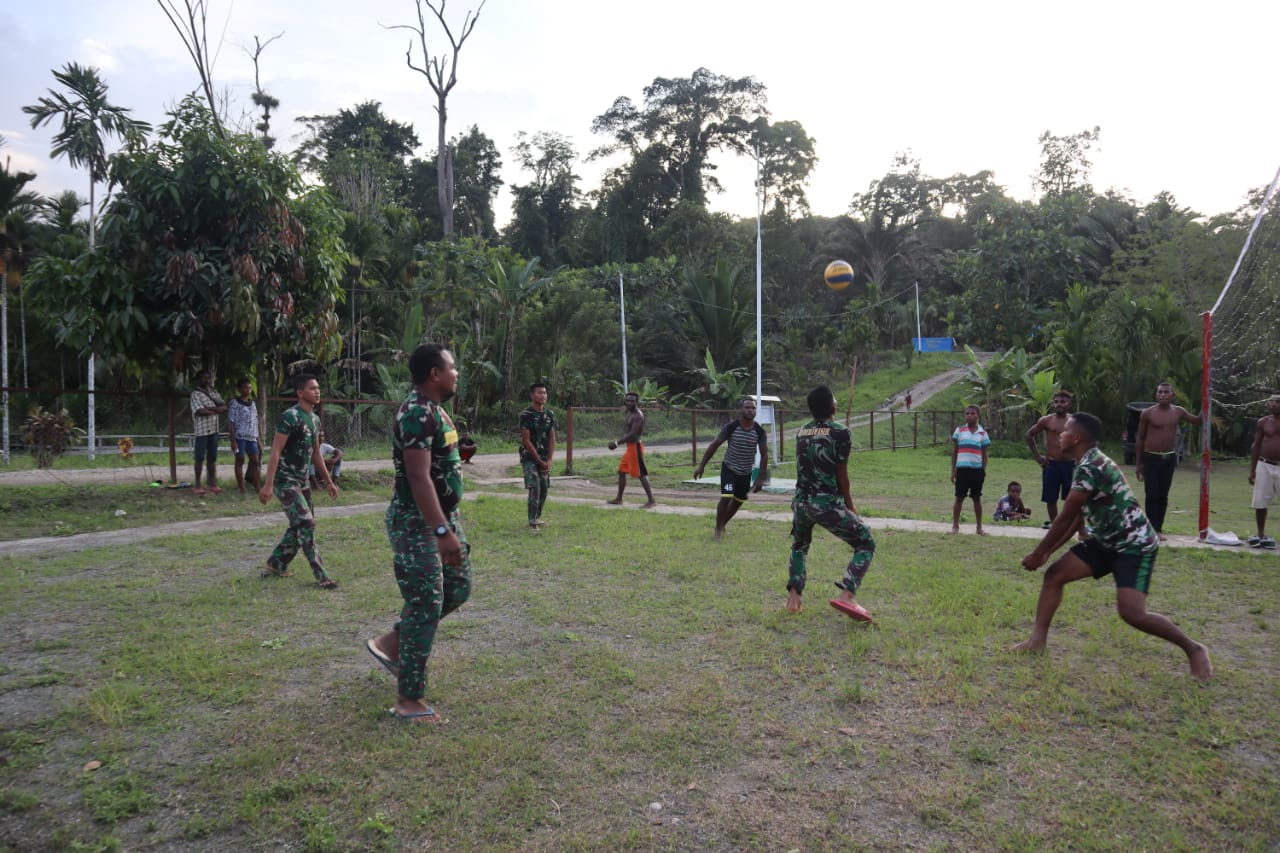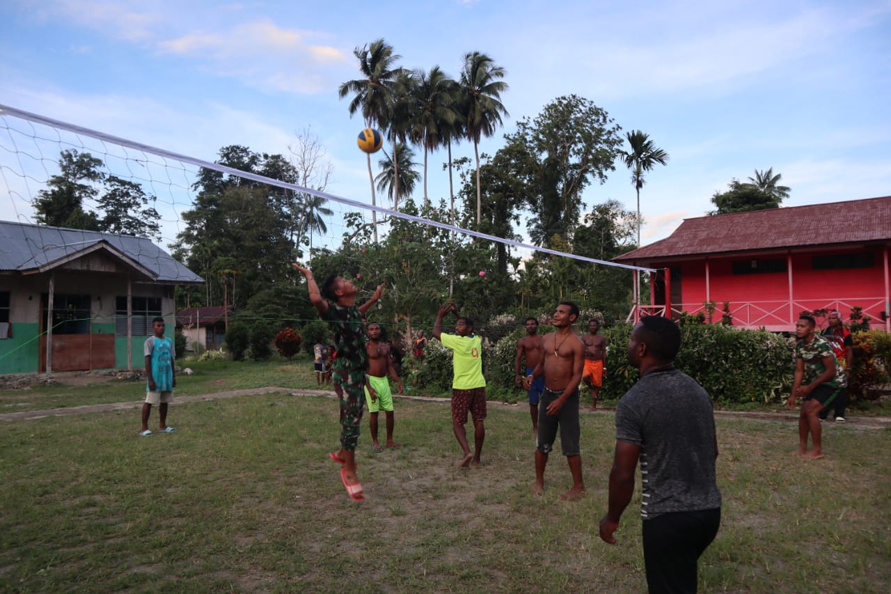 ”Lumayan, dengan bermain bola volly bersama, kami bisa menjaga kebugaran sekaligus mengusir kejenuhan. Lebih dari itu, kagiatan olah raga bersama masyarakat kampung Kibay juga dapat menambah keakraban kami,” kata Danki Satgas