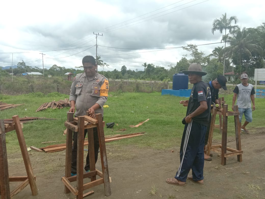 Kapolsek Kaureh AKP Rozikin, SH, melalui Bhabinkamtibmasnya Bripka Laode Marlin bersama Pemerintah Kampung Ongan Jaya Yapsi membuat tempat cuci tangan yang diperuntukan untuk masyarakat dan akan ditempatkan di fasilitas – fasilitas umum yang ada di Kampung Ongan Jaya Distrik Yapsi Kabupaten Jayapura.