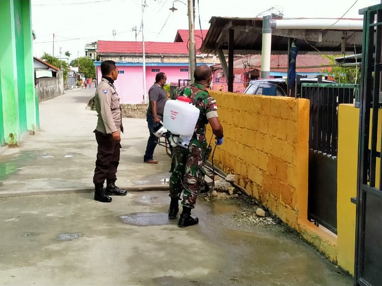 Jayapura Kota ( KPN).– Pada Senin (30/03/20), Aparat gabungan TNI-Polri bekerja sama melakukan penyemprotan disinfektan di Hamadi Rawa. Hal itu dilakukan untuk mengantisipasi penyebaran virus corona (Covid-19) di wilayah Distrik Jayapura Selatan.