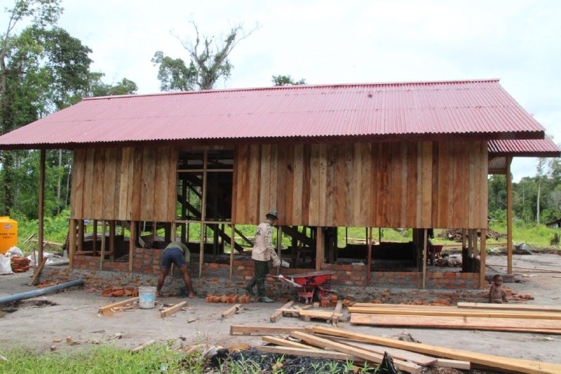 Merauke,(KPN)- Pembangunan 20 unit rumah masyarakat di Kampung Epem, Distrik Citak Mitak Kabupaten Mappi yang dikerjakan oleh Anggota Satgas TMMD Ke-107 Kodim 1707/Merauke hingga saat ini terus berjalan dengan baik dan lancar.