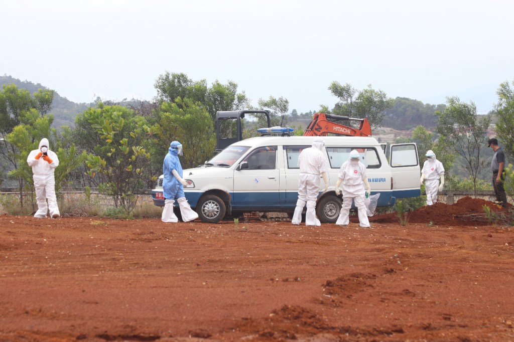 Kegiatan pemakaman dipimpin Kepala Rumah Sakit Tingkat II Marthen Indey Kolonel CKM dr. Budi. SpKJ dan Juru bicara covid 19 Prov Papua Dr. Silwanus Sumule , Sp OG, bersama Tim Unit Reaksi Cepat (URC) Covid 19 Polda dan Polresta Jayapura Kota yang dipimpin Iptu irwan serta Kapolsek Heram Iptu Alfrit B. Nadek, SH.