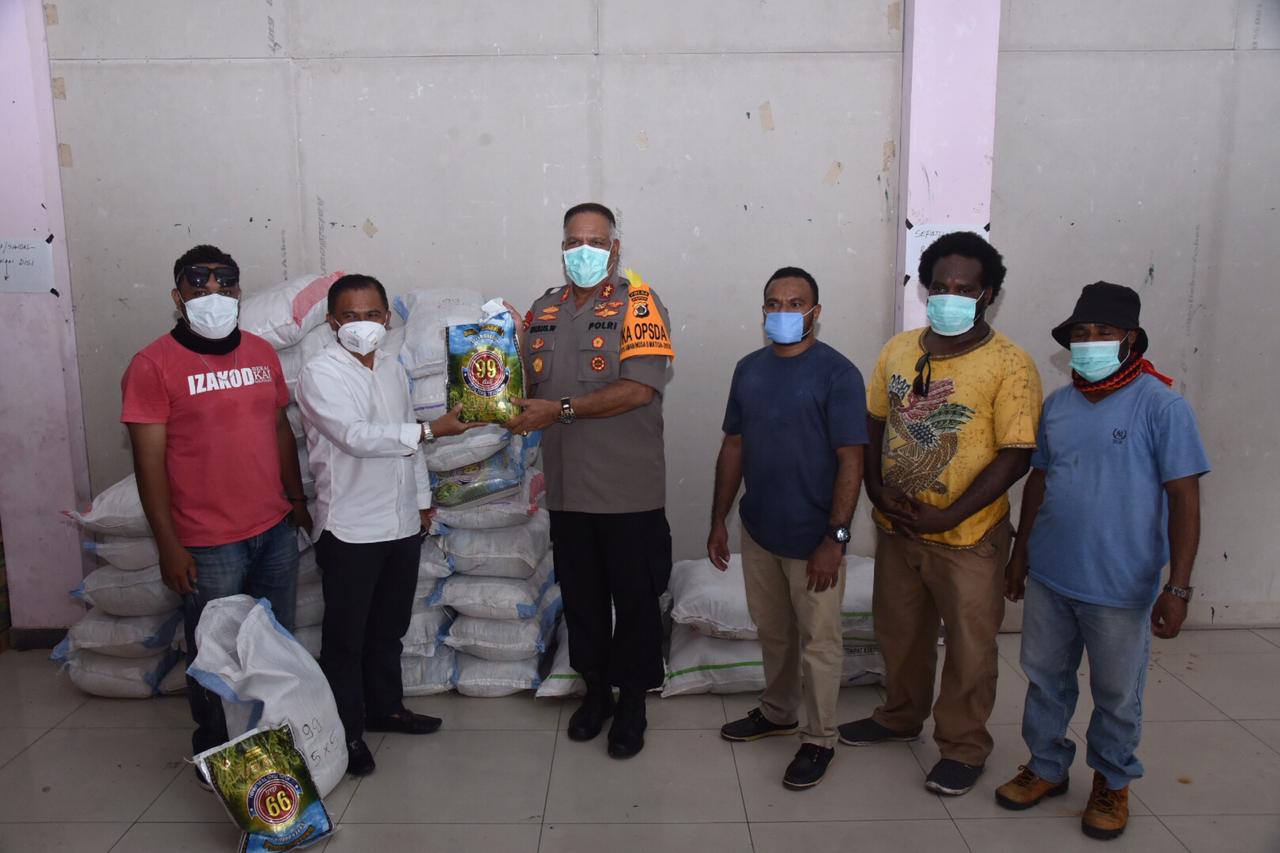 Dalam kesempatan tersebut Kapolda Papua menerima bantuan secara simbolis berupa beras dari pengusaha selanjutnya diserahkan kepada koordinator Posko“The Spirit of Papua”