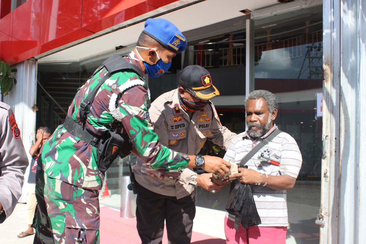 Biak (KPN)- Polres Biak Numfor bersinergi dengan TNI serta Pemerintah Kabupaten Biak Numfor melakukan aksi kepedulian dengan pembagian makanan gratis kepada masyarakat di Biak Numfor, khususnya kepada masyarakat yang terdampak akibat pencegahan Covid-19, Rabu (14/4/2020).