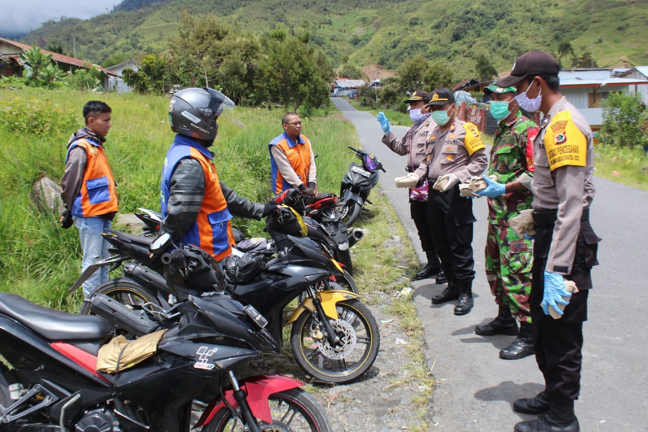 “Selain memberikan makanan kepada para tukang ojek, para personel Polri-TNI juga menghimbau kepada seluruh tukang ojek agar dalam pekerjaannya tetap memperhatikan protokol kesehatan diantaranya selalu menggunakan masker dan sarung tangan, usahakan menjaga jarak dengan para penumpang serta rajin mencuci tangan.”Jelas Kapolres Puncak Jaya