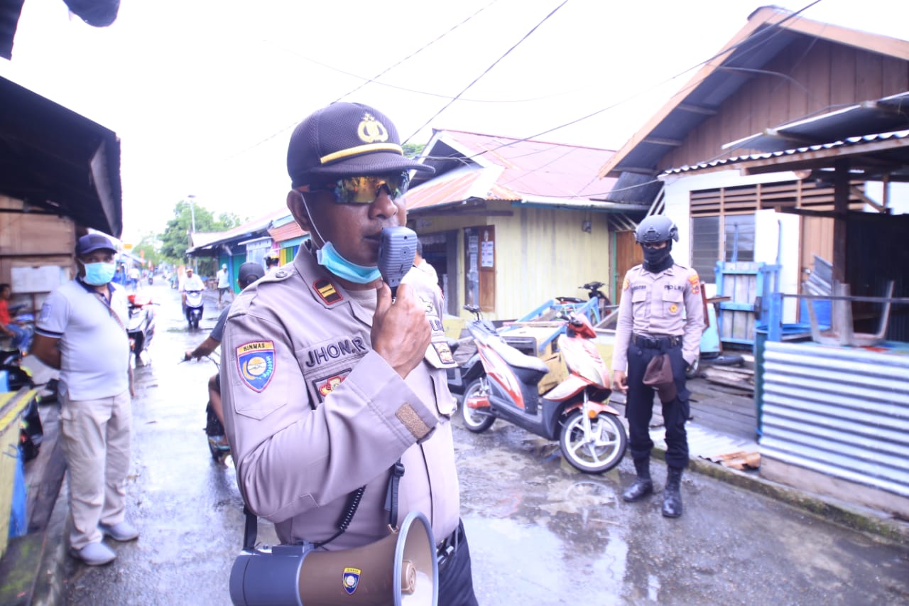 Patroli sekaligus memberikan Himbauan kepada Masyarakat, Para Pedagang Kios, Sembako, Rumah makan, Warung Kopi dan pedagang Kaki Lima yang masih berjualn di pinggiran jalan di seputran kota Agats.
