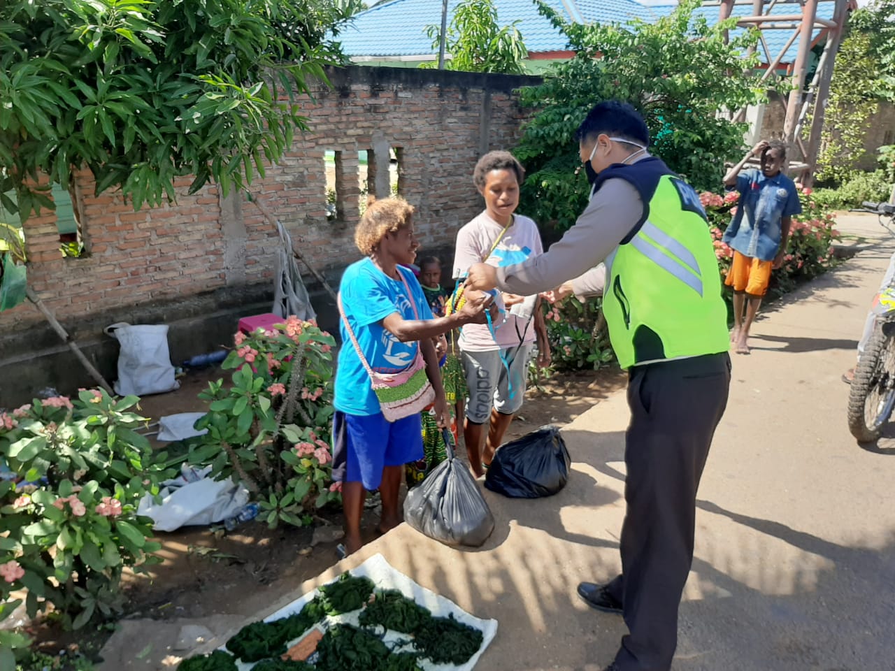 “Tujuan kami ke kampung urumb, namun dalam perjalanan kami menemui penjual air dorong,pekerja serabutan,dan masyarakat yang pantas,kami singgah untuk memberikan sembako tersebut”.Terang Kasat Lantas