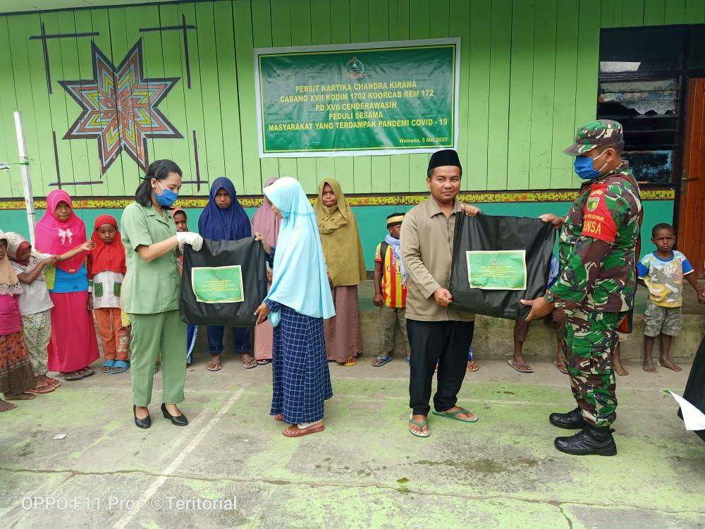 Wamena (KPN)- Dalam rangka mendukung Program Ketua Persit Pusat Ibu Hetty Andika Perkasa tentang kepedulian antar sesama, Persit Kartika Chandra Kirana Cabang XVII Kodim 1702/Jayawijaya mengunjungi Panti Asuhan untuk berbagi kasih dengan memberikan bantuan Sembako dan Pembagian masker yang dilakukan di Panti Asuhan Al Istiqomah Walesi Kabupaten Jayawijaya, pada Rabu (06/05/2020)
