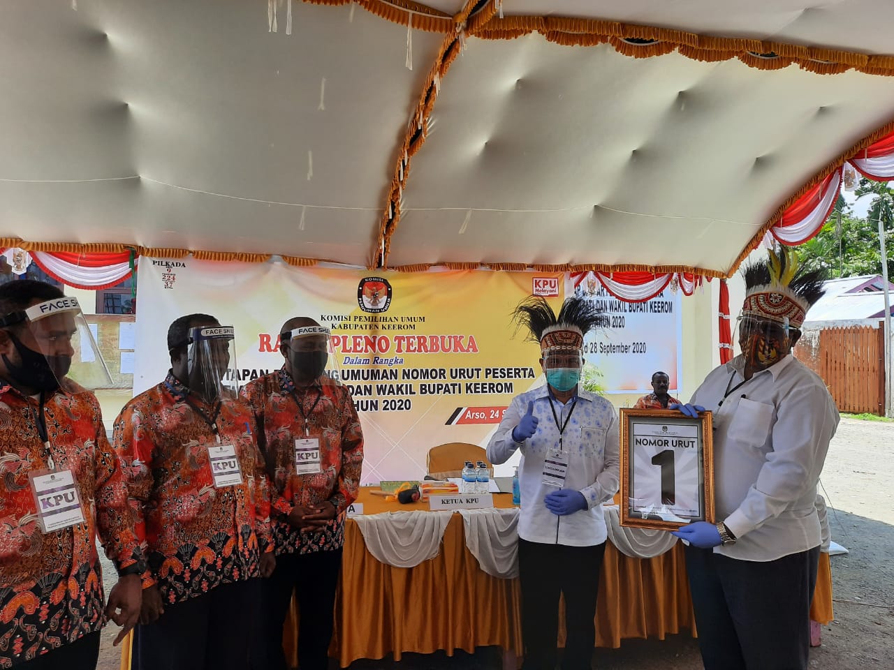Angka satu diperoleh pasangan Mama berdasarkan hasil pleno terbuka penetapan dan pengumuman nomor urut calon bupati dan wakil bupati Keerom yang digelar Komisi Pemilihan Umum (KPU) Keerom di halaman Kantor KPU setempat, Kamis (24/9/2020).