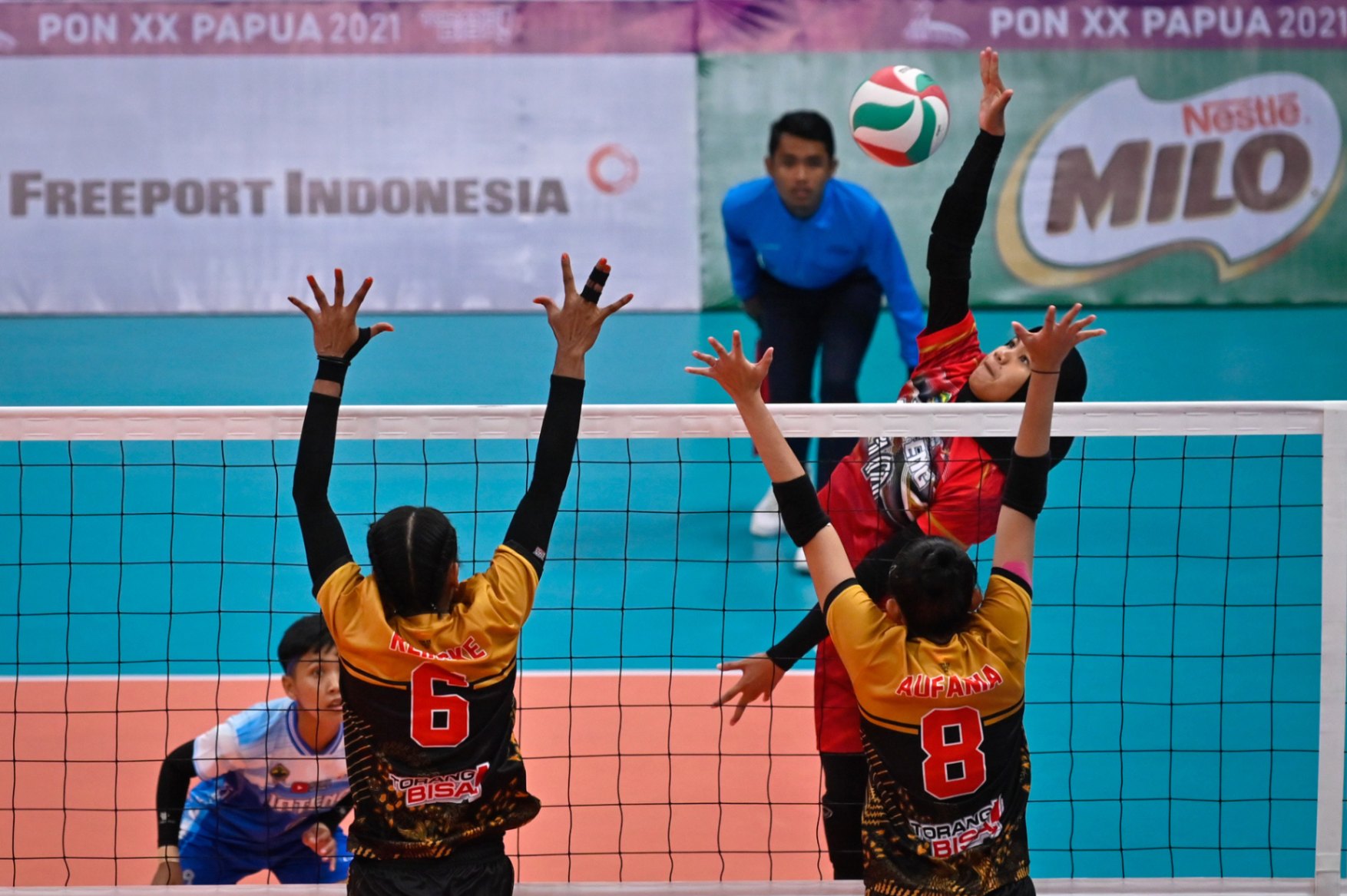 Foto: Tim voli indoor putri Papua saat bermain melawan Jawa Tengah – PB PON Papua/Hariandi Hafid