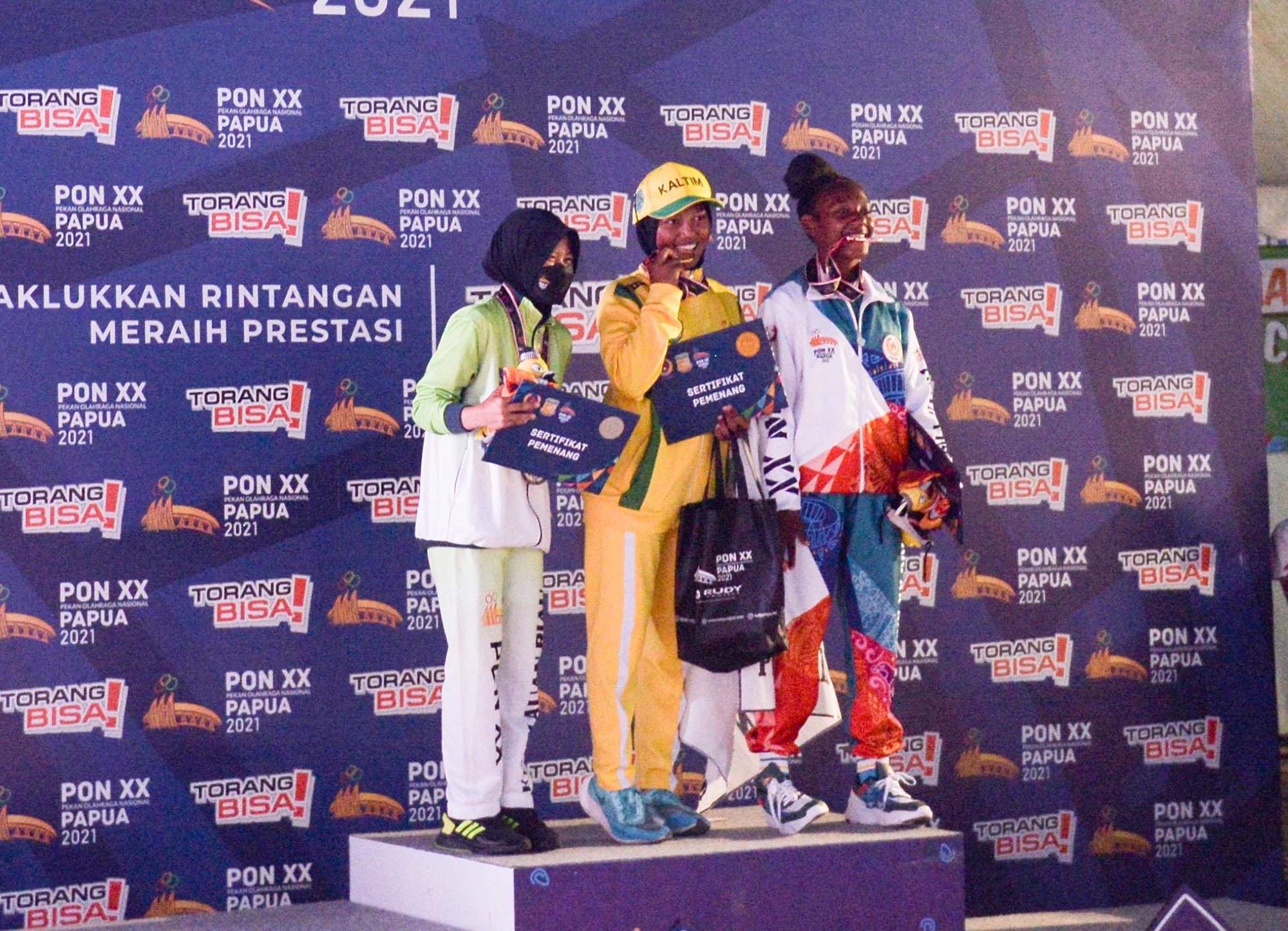 JAYAPURA—Atlet putri Kalimantan Timur (Kaltim) pada Cabang Olahraga Layar PON XX Papua 2021, berhasil menyabet tiga medali emas. DKI menyusul dengan dua emas, serta Banten dan Jatim masing-masing merai satu emas.