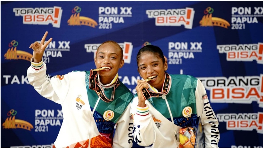 Pasangan Sonya Agustina Akwila Lutrun dan Grace Loois Maicel Samsanoy yang didampingi pelatihnya, Lonny Lutrun mengaku sangat bersyukur karena bisa menyumbangkan medali emas untuk Papua