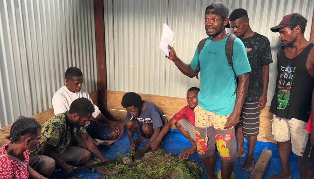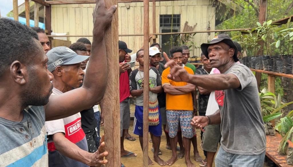 Di Balai Kampung Kufuriyai, Distrik Arguni Bawah Kabupaten Kaimana, Kamis (17/3/2022) Antonius Arfa (32), pemuda suku Irarutu dari Kampung Warmenu berdiri di hadapan 35 warga kampung Kufuriyai dan Manggera. Di tangan kanannya ia memegang spidol dan menulis di sebuah whiteboard, sambil menjelaskan tentang pupuk NPK.