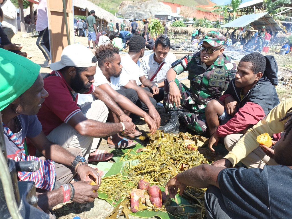“Kita menjalin Silaturahmi, TNI-Polri dengan masyarakat khususnya yang ada disini, kiat bersatu padu bahu membahu menyuarakan kedamaian di Papua melalui adat dan budaya bakar batu, ” Jelas Pangdam.