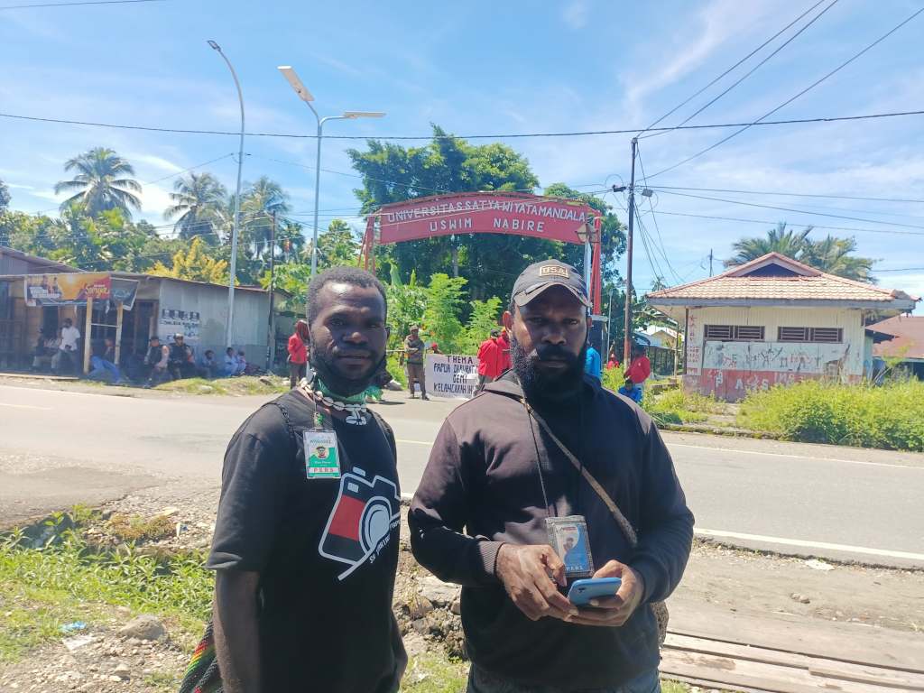 Melky Dogopia,Christian Degei Seputarpapua.com dan Elias Douw media lokal Papua Wagadei.id.
