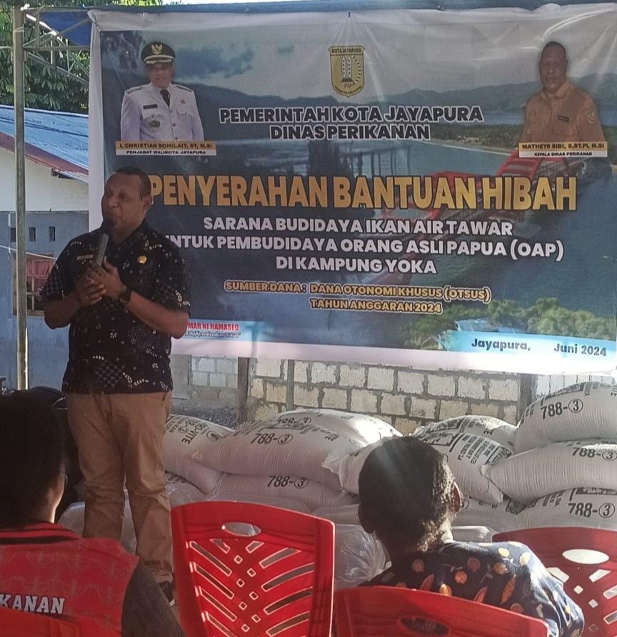 Jayapura,(KPN) -Dinas Perikanan Kota Jayapura kembali memberikan bantuan kepada 10 OAP pembudidaya ikan air tawar di kampung Yoka.