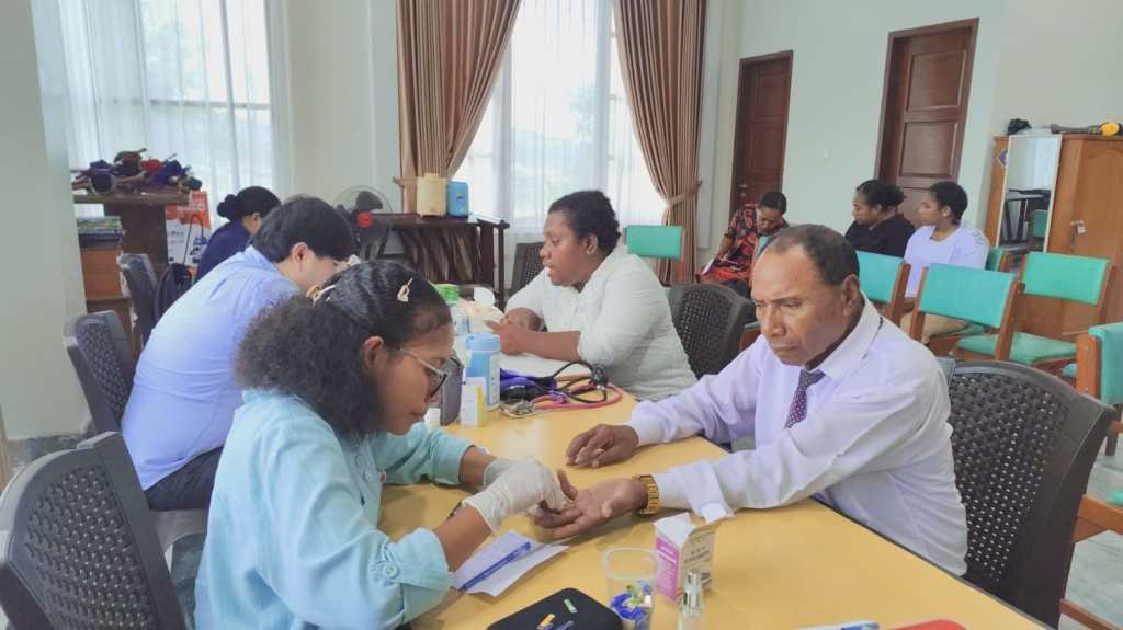Jayapura, (KPN)– Bertempat di Gedung Gereja GKI Harapan Abepura, Klasis Port Numbay menggelar pemeriksaan kesehatan bagi para pendeta yang melayani di 51 jemaat yang ada di lingkungan Klasis Port Numbay. Pemeriksaan ini merupakan bagian dari perhatian khusus terhadap kesehatan para pelayan firman, agar selain kuat dalam iman, mereka juga sehat secara fisik dalam menjalankan tugas mereka.