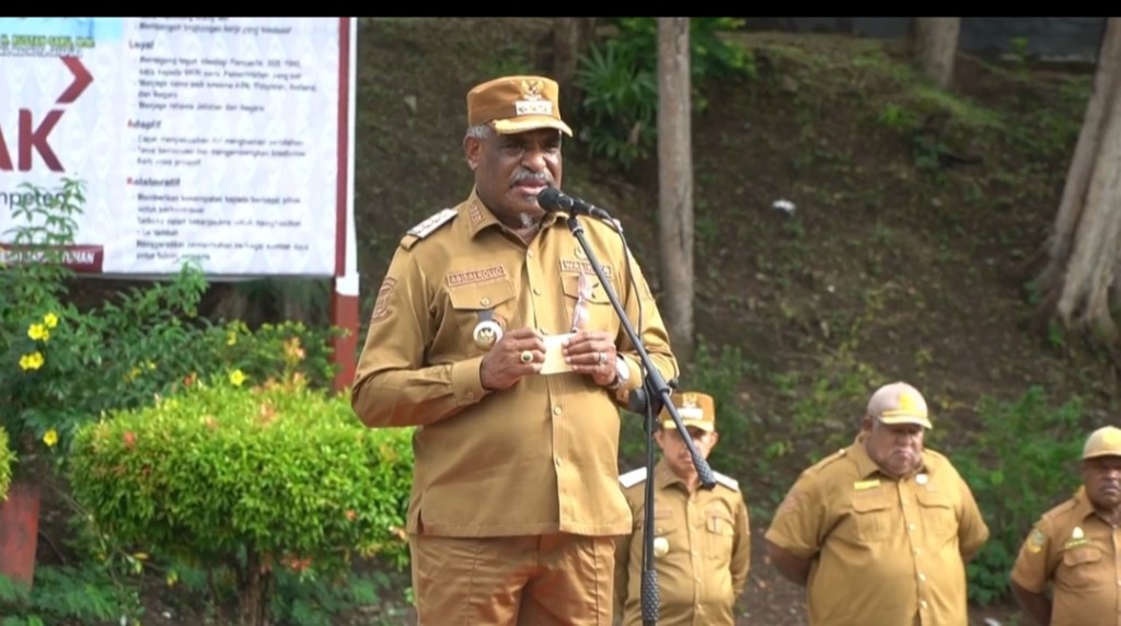 Kota Jayapura,(KPN)– Wali Kota Jayapura, Abisai Rollo, menegaskan pentingnya kedisiplinan seluruh aparatur sipil negara (ASN), tenaga honorer, dan P3K di lingkungan Pemerintah Kota Jayapura. Hal ini disampaikannya usai memimpin apel pagi dilapangan upacara Kantor Wali Kota Jayapura pada Senin (14/4/2025).