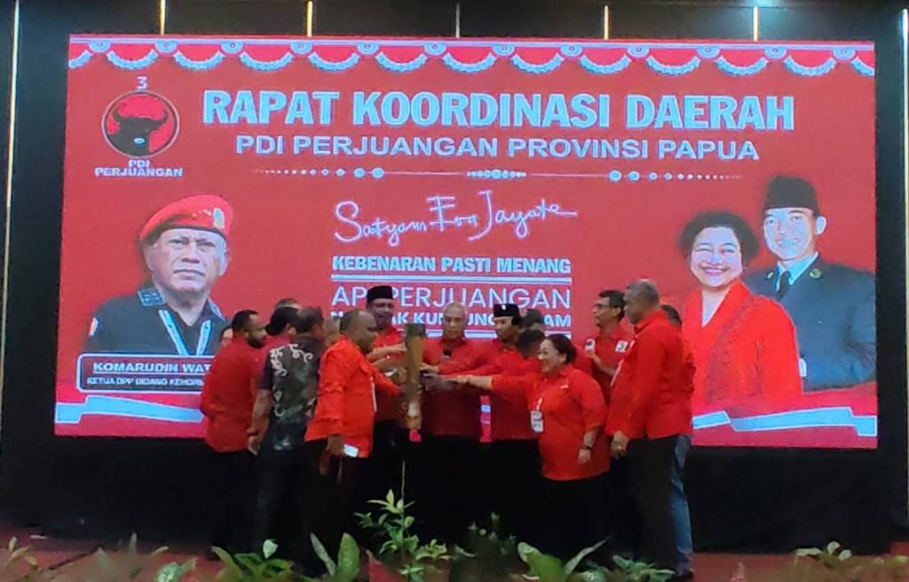 Dengan mengusung tema “Satyam Eva Jayate—Kebenaran Pasti Menang”, RAKORDA menjadi wadah pemersatu kekuatan politik se-Tanah Papua. Hadir dalam kegiatan ini antara lain Komarudin Watubun (Plt. Ketua DPD PDI Perjuangan Papua sekaligus Ketua Bidang Kehormatan DPP) dan Surya Ibrahim Basri Syafaat (Sekretaris DPD).