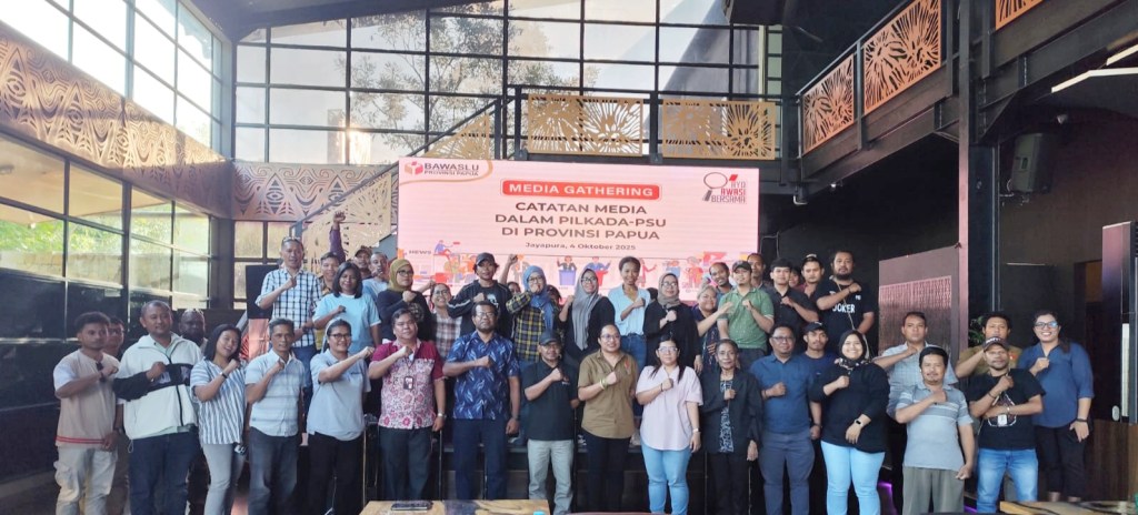 Jayapura,(KPN) — Badan Pengawas Pemilu (Bawaslu) Provinsi Papua menggelar kegiatan media gathering bertajuk “Catatan Media dalam Pilkada dan PSU di Provinsi Papua” pada Sabtu (4/10/2025) bertempat di salah satu resto kawasan Pantai Hamadi, Kota Jayapura. Acara ini dihadiri oleh para insan pers dari media elektronik, cetak, dan online se-Kota Jayapura serta jajaran pimpinan dan staf Bawaslu Papua.